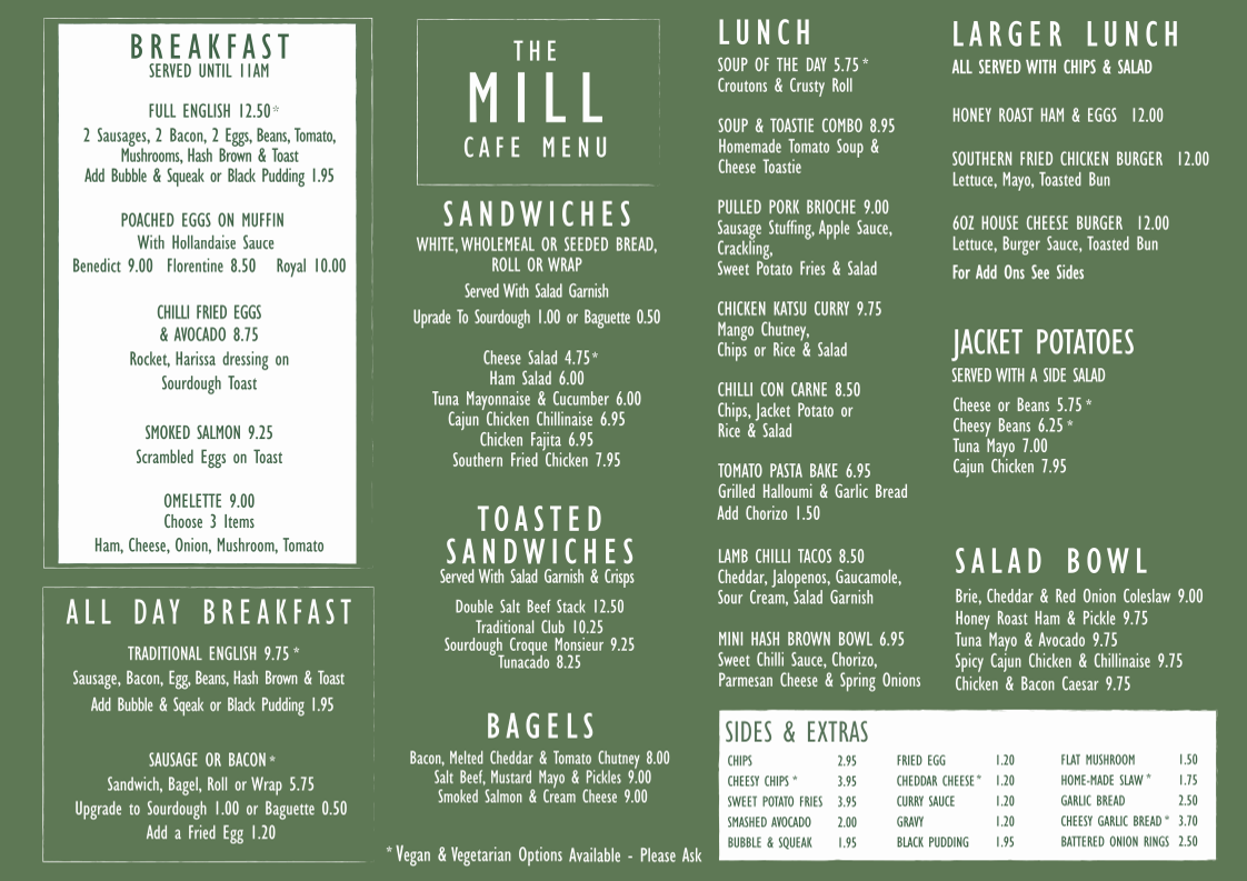 Welcome to The MILL Café, nestled within the serene grounds of Turkey Mill in Maidstone. This charming café features a thoughtfully curated menu, perfect for satisfying a range of cravings.